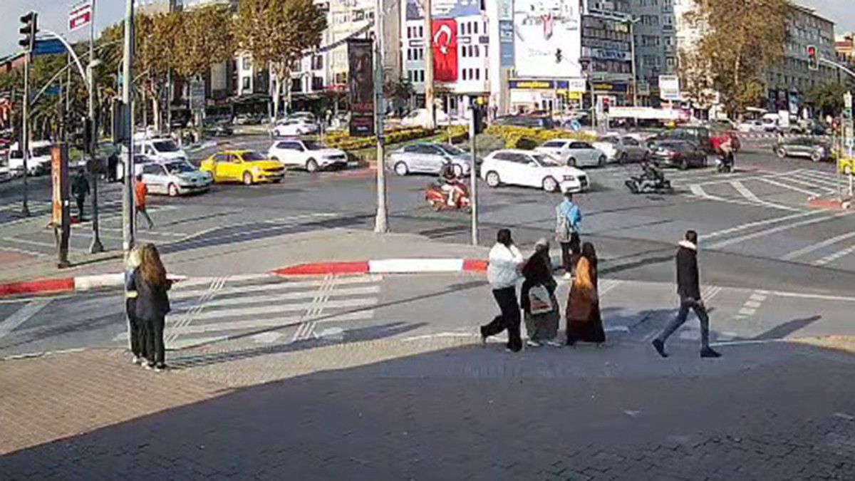 Kaza anı çevredeki bir iş yerinin güvenlik kamerasınca kaydedildi.